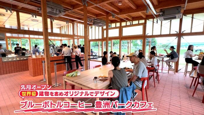 2024年8月に東京・豊洲にオープンしたのが、世界初!建物からオリジナルデザインの「ブルーボトルコーヒー」のカフェ「ブルーボルドコーヒー 豊洲パークカフェ」。