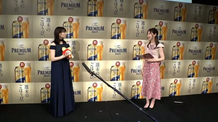 イベントでは、ビールを豪快に飲んで、「すみません!なんか1人で乾杯しちゃったみたいで(笑)。今日も家に帰ったら(ビールを)楽しみにしています。また夜に会いたいです」とほほ笑みました。