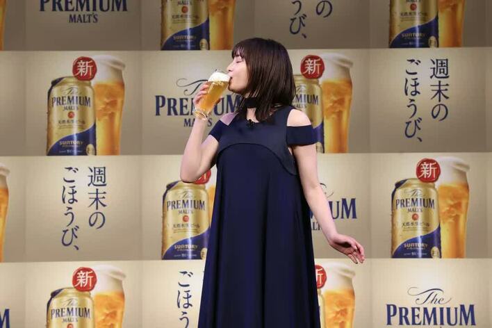 広瀬すずさんが7月10日、イメージキャラクターを務める「ザ・プレミアム・モルツ」新メッセンジャーお披露目会に出席しました。