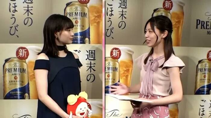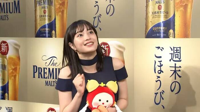 広瀬すずさんが7月10日、イメージキャラクターを務める「ザ・プレミアム・モルツ」新メッセンジャーお披露目会に出席しました。
