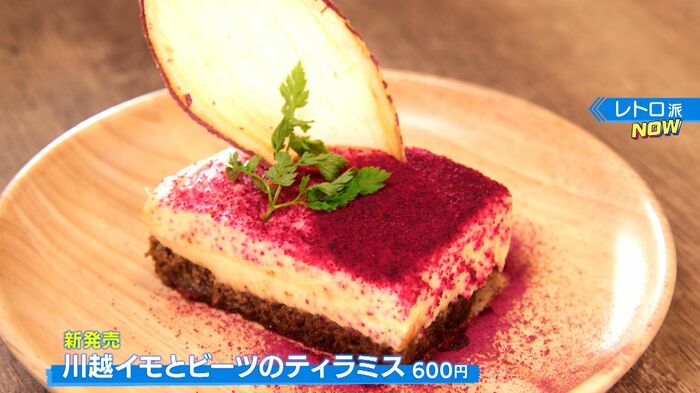 川越名物・さつまいもを使ったティラミス「川越イモとビーツのティラミス(600円)」が新登場。