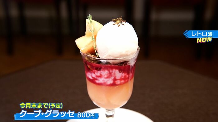 旬のモモを使ったパフェ「クープ・グラッセ(800円)」が、9月の限定スイーツとして登場です。