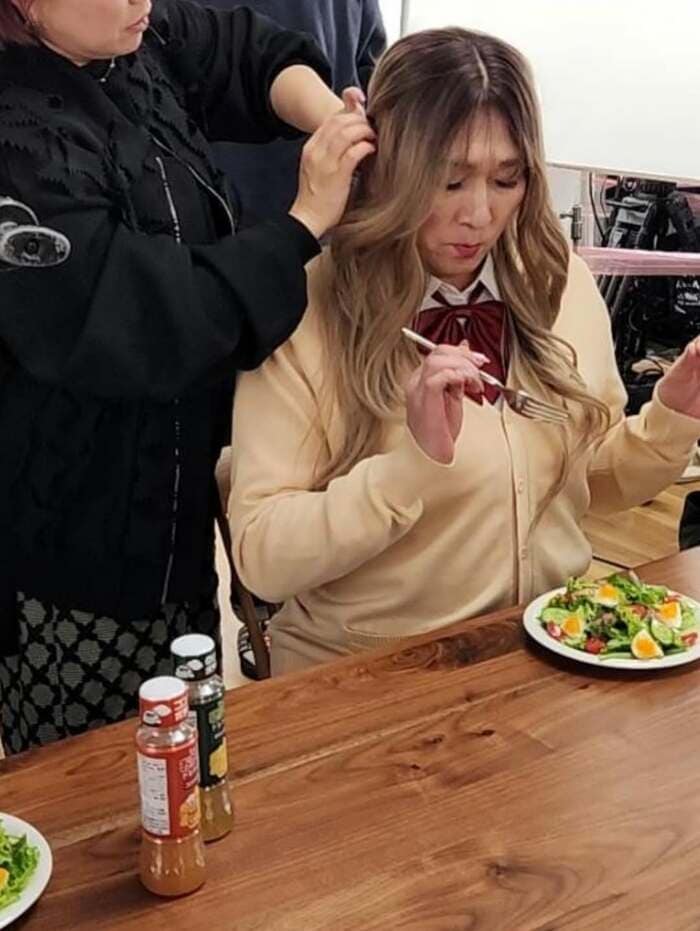 CM撮影を行っていたようで、ヘアスタイルを整えてもらっているようなカットも。顔周りにウェーブを入れて、毛先までくるくるにかわいらしくヘアアレンジされていますね!