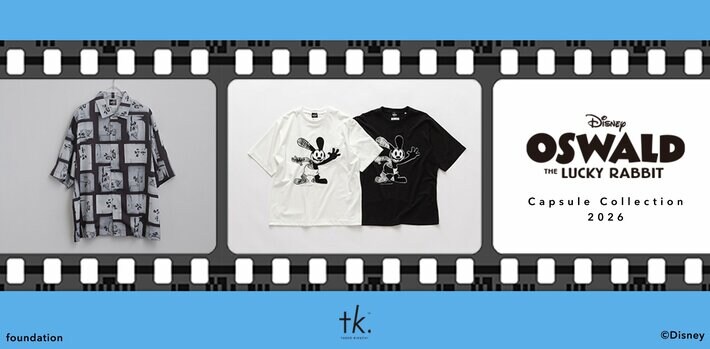 ワールドグループの株式会社エクスプローラーズトーキョーが展開するユニセックスブランド「tk.TAKEO KIKUCHI (ティーケー タケオキクチ)」は「オズワルド・ザ・ラッキー・ラビット」をモチーフにしたディズニーカプセルコレクションが4月24日(金)より全国店舗ならびにZOZOTOWNにて発売開始いたします。
