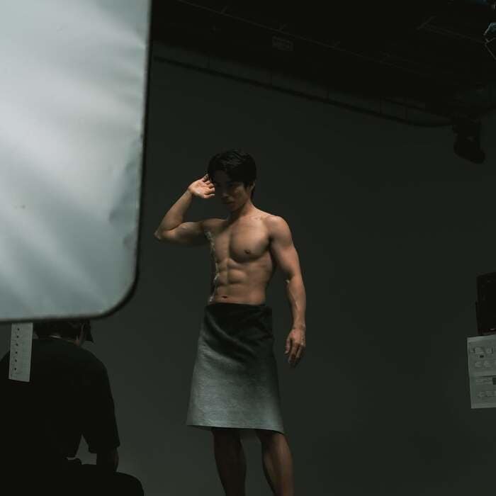 さらに、カメラに向かって頭の後ろで両腕を組んだ、色気あふれる撮影中の様子も披露した中尾さん。ストイックに努力を重ねて、体づくりに励んだ様子がうかがえますね。