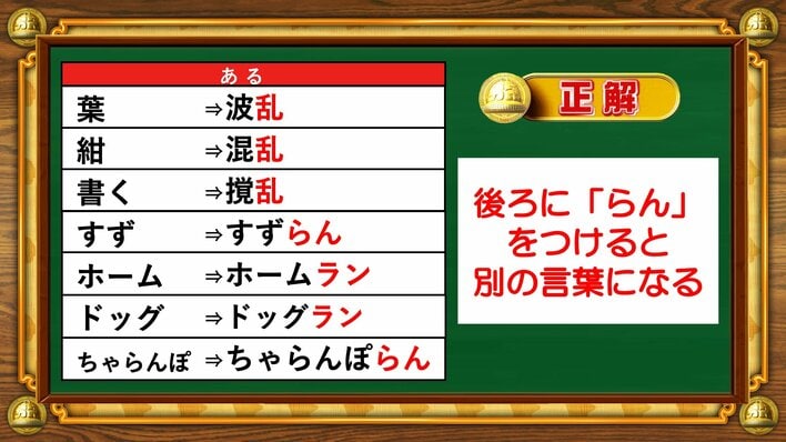 ヒントその2。「ある」側の言葉のうしろに共通の2文字がくっつきます。