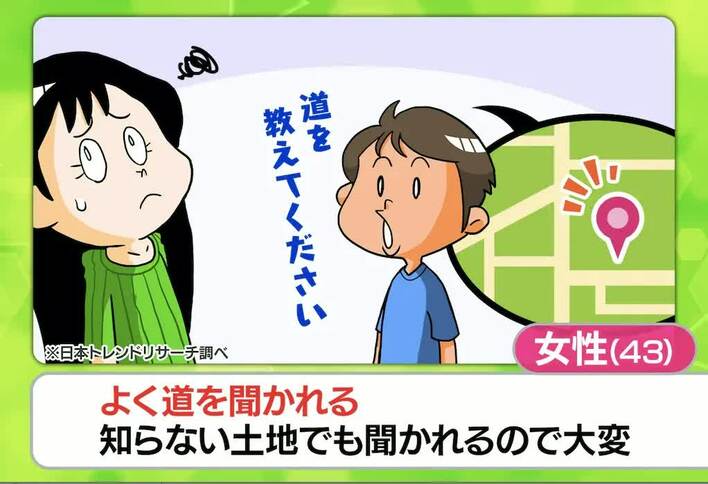 「よく道を聞かれるタイプなのだが、知らない土地でも聞かれるので困る」という、43歳女性のお悩みも紹介されました。