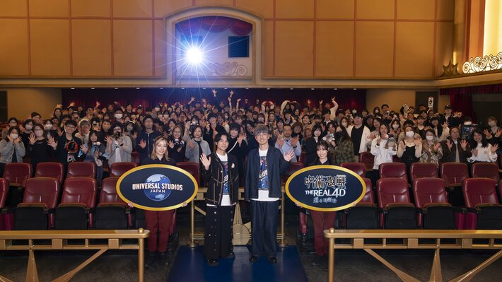 4月5日(日)、ユニバーサル・スタジオ・ジャパンで、『「呪術廻戦」スペシャル・トークイベント』を開催。「呪術廻戦」虎杖悠仁役の榎木淳弥氏と、夏油傑/羂索役の櫻井孝宏氏が登場し、特別招待されたファン140名とともに、“呪力”を全身で超リアルに体感できる大好評アトラクション『呪術廻戦・ザ・リアル 4-D ~廻る時計台~』を体験。作品世界とシンクロする特別な時間を満喫しました。