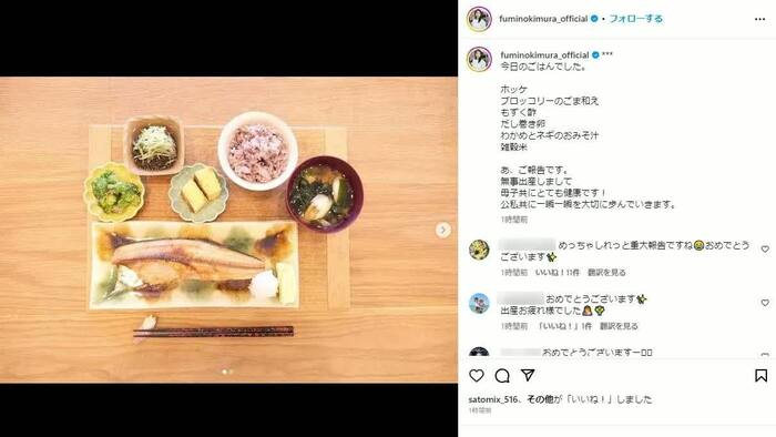 木村さんはInstagramで、毎回おしゃれな手料理をアップして投稿。結婚&妊娠のときと同様、出産についても「あ、ご報告です。無事出産しまして 母子共にとても健康です!公私共に一瞬一瞬を大切に歩んでいきます」と、料理写真とともにさらりと発表したため、ファンからは「しれっと重大報告ですね」といった声があがりました。