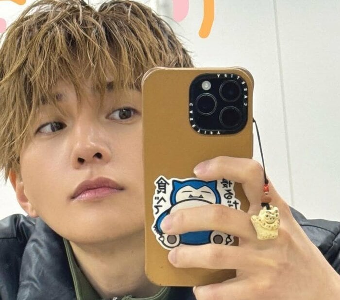 手元のスマホには『ポケットモンスター』のカビゴンのステッカーが。「食べて寝るだけ」と書かれたステッカーは存在感を放っています。