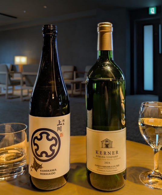 ホテル10階のラウンジは、旭川発の家具ブランド「カンディハウス」の上質なテーブルやソファを配した、くつろぎの空間です。高層階にご宿泊のゲストは無料でご利用でき、フリードリンクやスナックをお楽しみいただけます(他客室のゲストも有料でご利用可能です)。1周年を記念し、このラウンジにスタッフが厳選した北海道産の日本酒とワインを数量限定でご用意しました。地域の生産者がこだわりを持って造った2銘柄を通じ、北海道の奥深い魅力を体感いただけます。