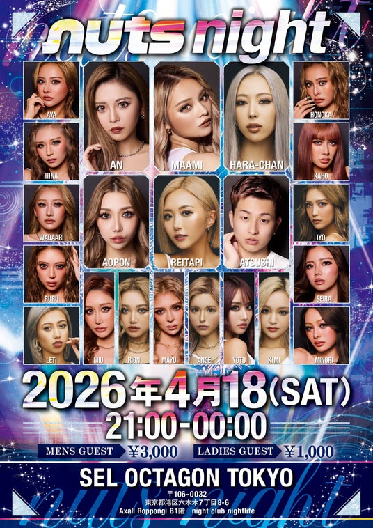 姉ギャル雑誌『nuts(ナッツ)』は、2026年4月18日(土)、六本木SEL OCTAGON TOKYOにて、所属モデルが総出演する一夜限りのスペシャルイベント「nuts night」を開催いたします。