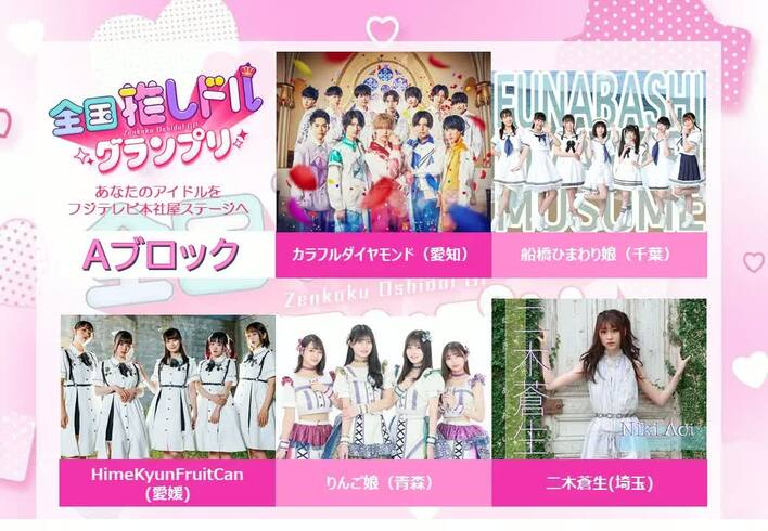 「推しドル応援スタジオ」で生配信される番組内で、各ブロックから予選通過アイドル1組を決定。