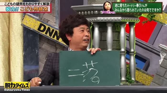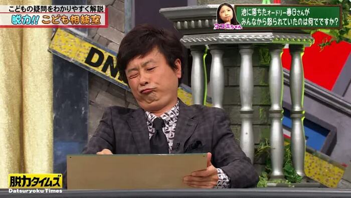 Q.この間、間違ってプールに落ちたら、みんなから「大丈夫?」って心配されました。でも、テレビを見ていたらオードリーの春日(俊彰)さんが池に落ちたのに、みんなから怒られていました。なんでですか?(佐々木ココミちゃん/9歳)
