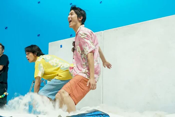 ハワイのビーチを再現した美術セットに終始テンションが高かった北村さんと中川さん。