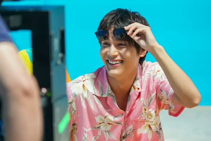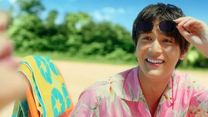 ビーチベッドに座った中川さんは「匠海とこういうシチュエーション初めてだな~。なんか恥ずかしい(笑)」と笑みをこぼし、1シーン目を先に撮