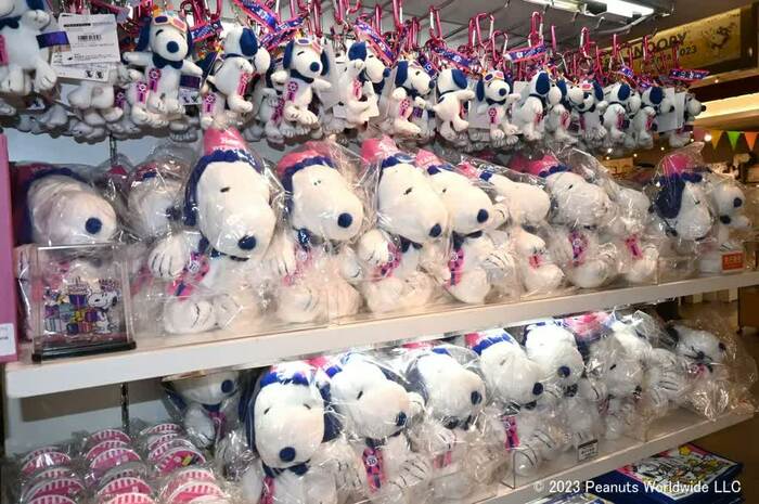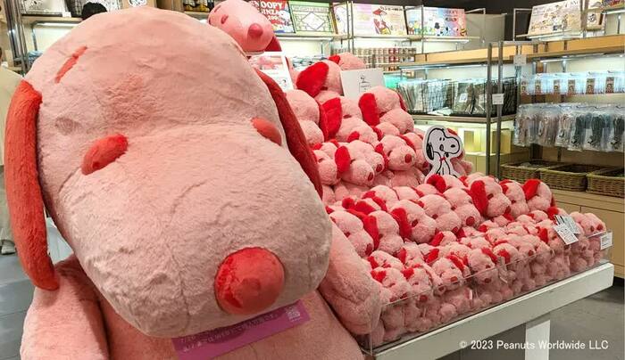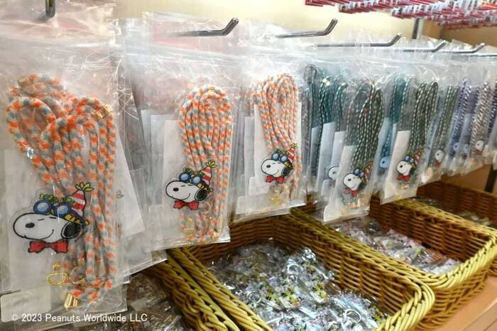広い店内には、ピーナッツのオフィシャルショップ「スヌーピータウンショップ」、スヌーピーのテーマカフェ「PEANUTS Cafe」、ウッドストックをテーマにしたショップ「WOODSTOCK NEST」などで扱うグッズもズラリ。