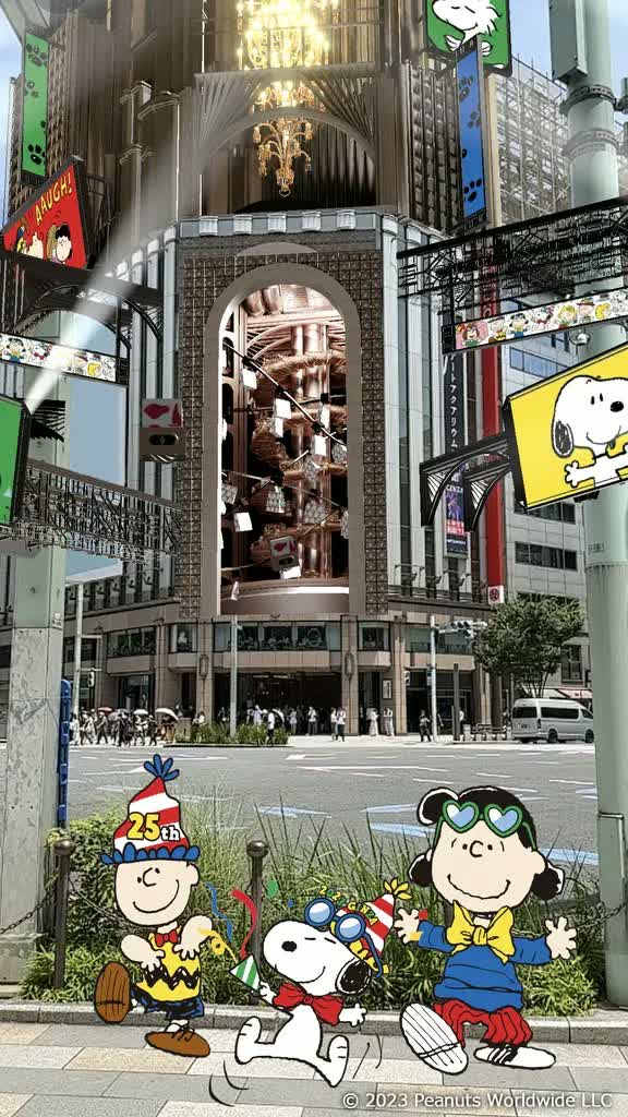 銀座三越を出ても「スヌーピーin銀座2023」は終わりません。7月26日から、最先端AR技術「Virtual GINZA mitsukoshi」をスヌーピーと仲間たちがジャックするイベントも開催。
