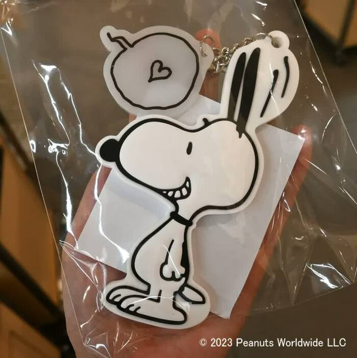 そして、「PEANUTS Cafe」のラバーキーホルダー(1980円)は、大きめサイズで存在感あり。ハートの吹き出しがついているのがポイントです。
