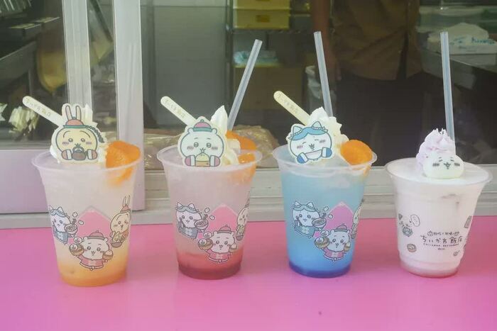 ちいかわ、ハチワレ、うさぎの最中がトッピングされた「あたりくじ付きクリームソーダ」や、「くりまんじゅうの休肝日ドリンク スーベニアカップ付き」、「ちいかわ肉まん」の販売もあり、ちいかわファンには見逃せないエリアとなっています。
