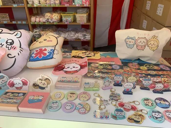 「ちいかわお台場商店」では、「お台場冒険王」オリジナルのちいかわ縁日イラストがデザインされた商品や、アニメ『ちいかわ』のイラストを使用した商品がたくさん販売されます。