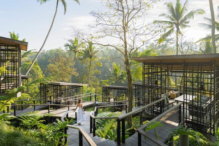 「星のや」ブランドの海外 1 軒目の施設として、バリ文化・芸術の中心地であるインドネシア・バリ島 ウブドに開業した滞在型リゾートです。バリの神話に語り継がれる聖なる川「プクリサン川」が流れる 渓谷の上に位置し、ジャングルに浮かぶガゼボ、川を模したプール、渓谷を臨むダイニング、バリの伝 統工芸を散りばめたヴィラなど、ウブドのダイナミックな自然や芸術的な文化を感じられる空間です。