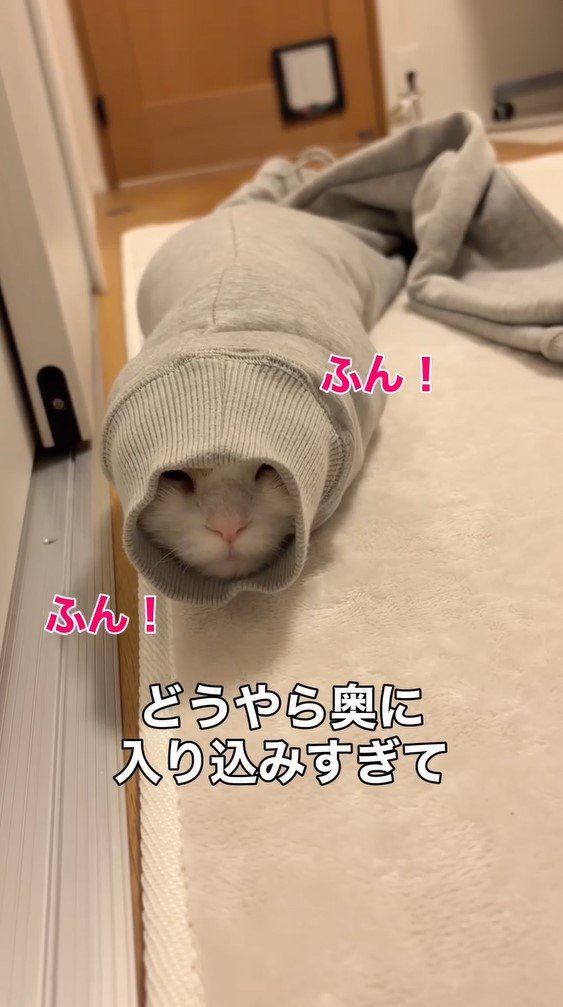 ですが、絶妙に体が裾にはまってしまったため、自力で脱出するのは最後まで難しい様子でした。飼い主さんによると、動画の後はつくねちゃんを無事に救出してあげたと明かしています。