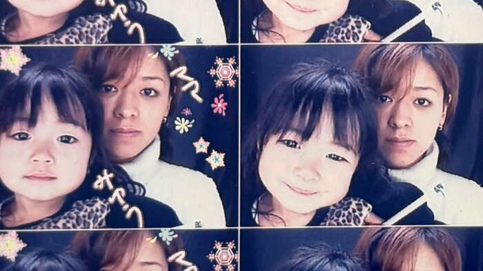 写真には、幼少期のみちょぱさんと、その後ろに立つ母親の姿が写っています。お澄まし顔を見せる幼いみちょぱさんの愛らしさに、思わず頬が緩んでしまいそうです。