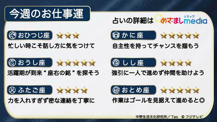 まずは、おひつじ座からおとめ座までのお仕事運を一覧で!