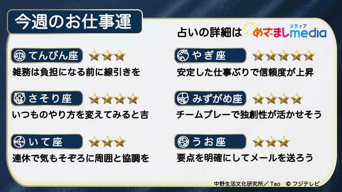 続いて、てんびん座からうお座までのお仕事運を一覧で!