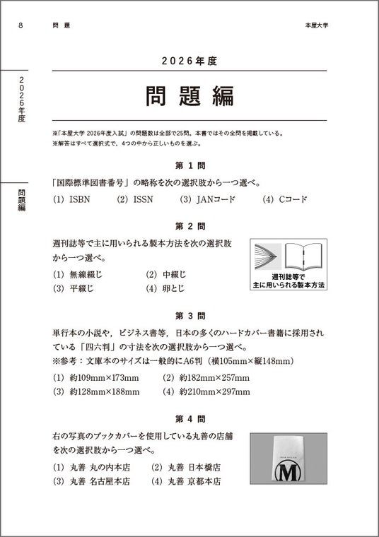 本屋大学の「赤本」には、「傾向と対策」「2026年度の問題と解答」「2027年度の予想問題と解答」「書店員の必読書」を収録しています。