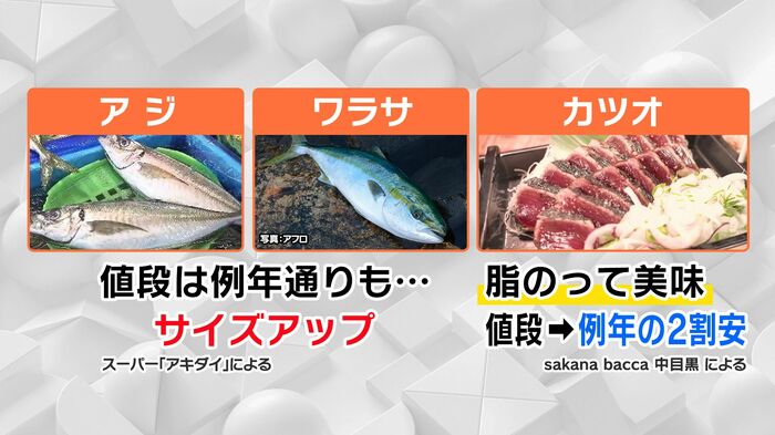 都内のスーパーでは、アジやワラサは値段は例年と変わらないそうですが、1匹あたりのサイズが大きくなっているといいます。