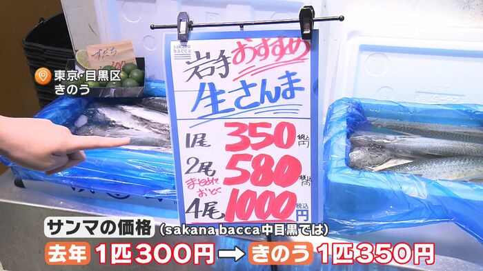 そのため、去年のこの時期は、1匹300円ほどだったというサンマを、9月17日には350円で販売。