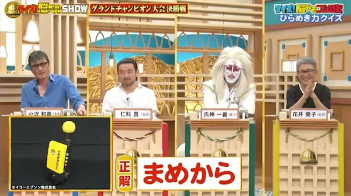 今回の解答者は、俳優・小沢和義さん(55)、俳優・仁科貴さん(50)、アーティスト・氏神一番さん(61)、作家・花井愛子さん(63)の4名です。