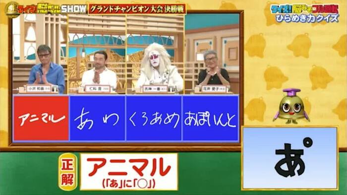 正解は「アニマル(『あ』に『○』)」。小沢さん1人だけ正解!