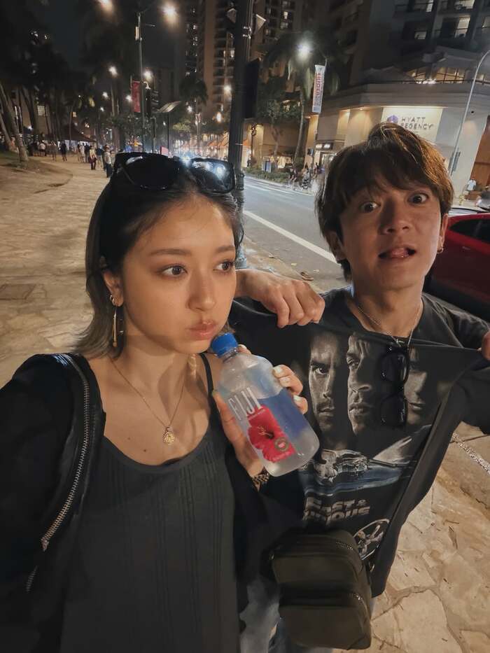 また、夜のハワイの街をルンルンで歩くツーショットも!