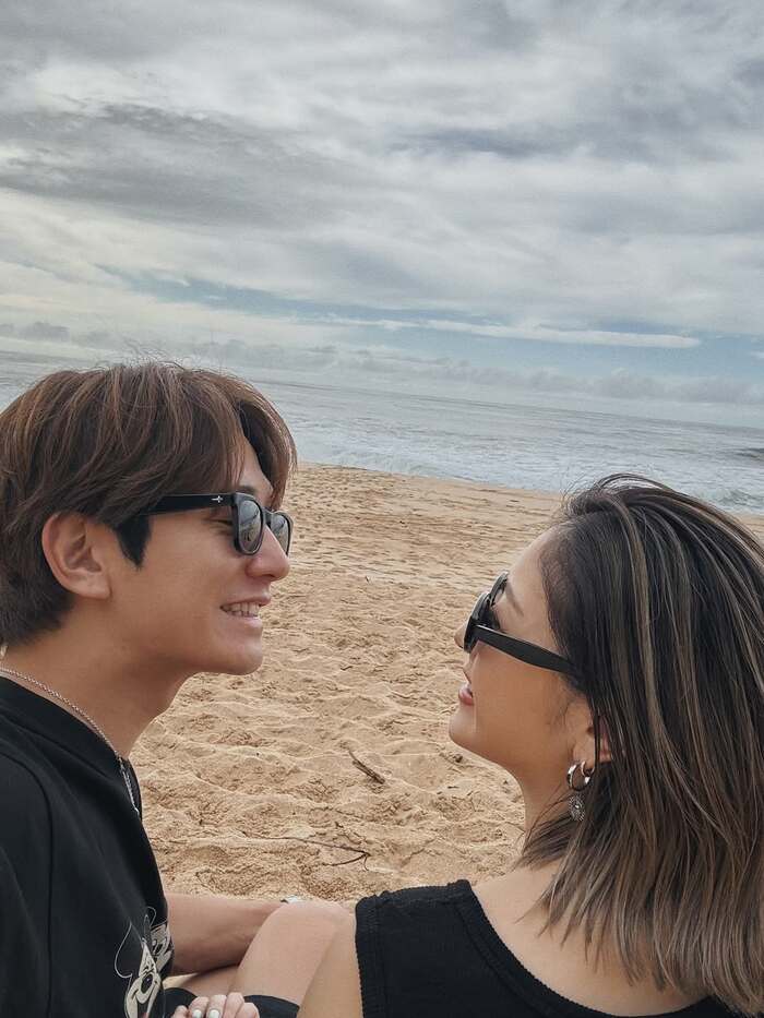 そこには、砂浜に座り、互いにサングラスをかけたみちょぱさんと大倉さんが笑顔で向き合う姿が!歯を見せてニッコリする横顔から、幸せオーラが伝わってきます。