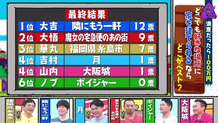 ここまで、実在する場所が続くなか、大吉さんが「せっかくのお題。どこでもいいんだから、もっと夢を持とうよ」と言い出して…。