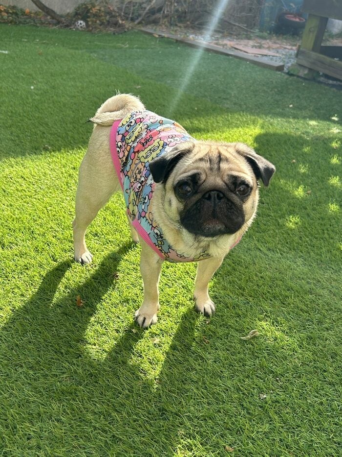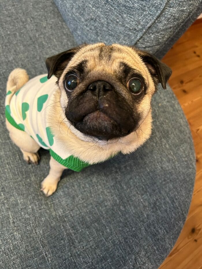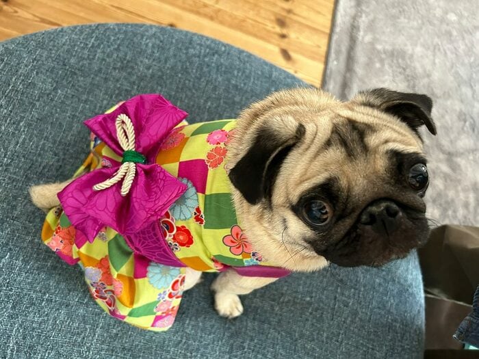 くりくりのおめめでこちらを見つめているのは、4歳のパグ「ぽんずちゃん」。