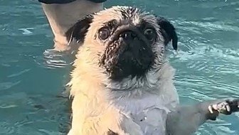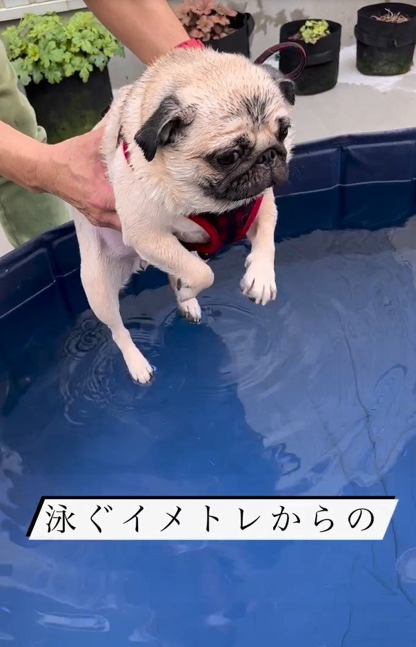 プール遊びに挑戦したパグが途中でまさかの行動に!?