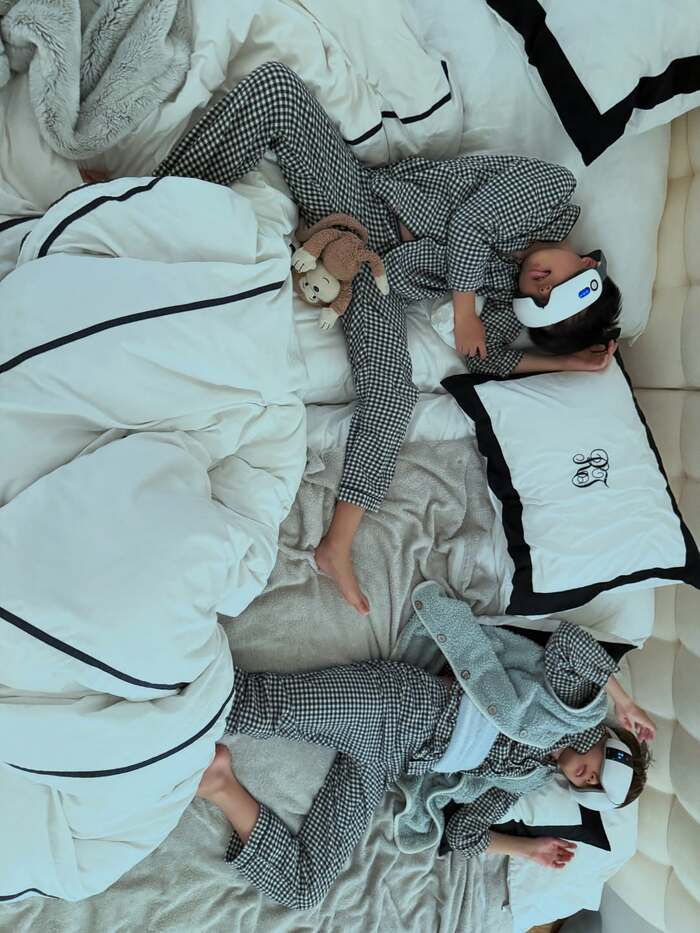 この投稿に対し、ファンからは「寝てくれましたかー?」「息子さん達のアイマスクが気になります」「目にしてるのなんですか?」「寝具もパジャマも全てセンスが良いから、息子さん達のすごい寝相も(笑)様になっててさすが」などのコメントが寄せられています。