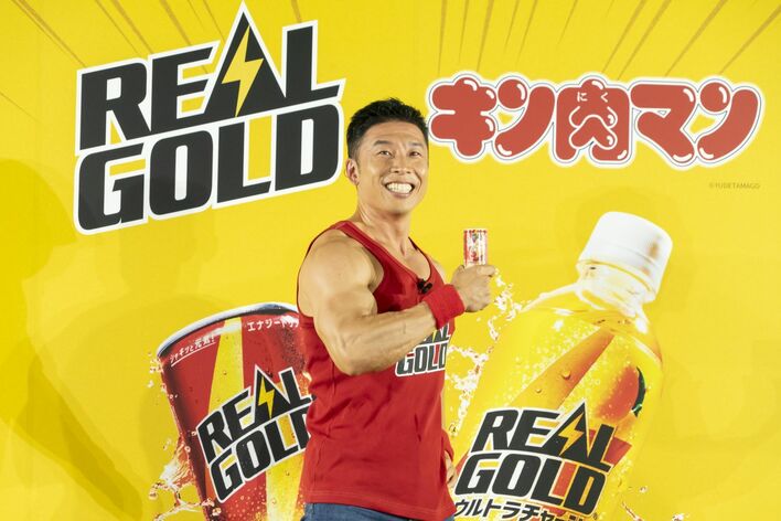 「リアルゴールド」は、漫画「キン肉マン」のイラストと作中の名セリフをパッケージに起用した、コラボデザインを作成。