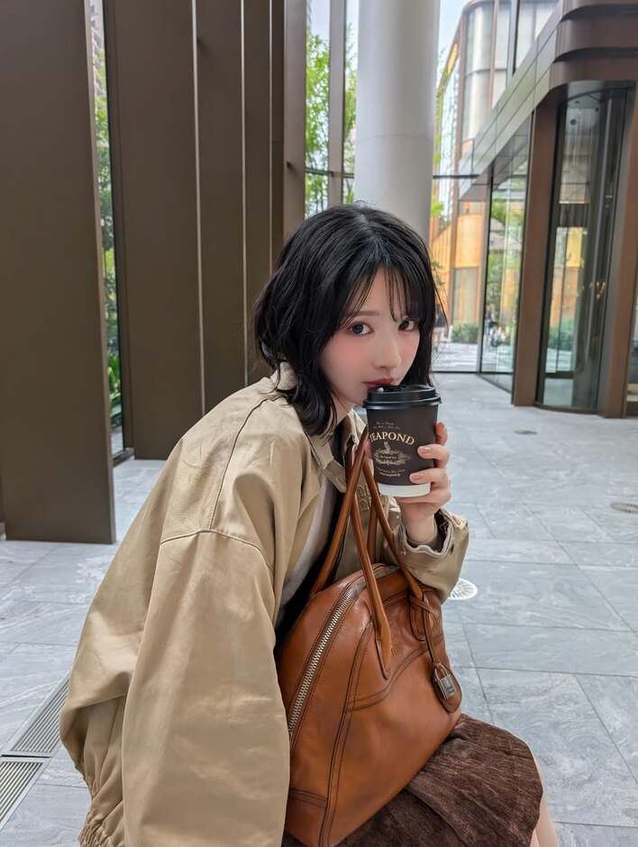 さらに、ベンチに座りコーヒーカップを口元へ運ぶショットも公開。少し上目遣いでカメラを真っ直ぐに見つめる、“彼女感”あふれる一枚となっており、日常のワンシーンを切り取ったような距離感に思わずドキッとしてしまいます。
