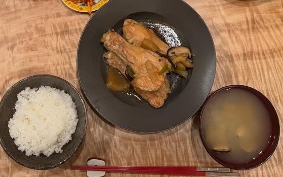 白米とあさりのおみそ汁の間に置かれたのが、手羽元と大根の煮付け。ボリュームのある手羽元に、大根、しいたけ、ねぎなどの野菜を加えてじっくり優しく煮込んだ様子が伝わってきます。味がしっかりと染み込んでいるようで、とってもおいしそう!