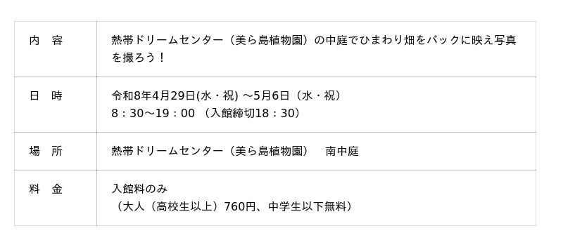 海洋博公園、沖縄美ら海水族館では、令和8年4月25日(土)~5月6日(水・祝)のGW期間、連休を家族や仲間で楽しめる様々なアクティビティを開催します。