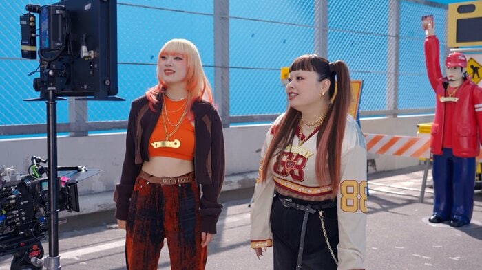 「クランキー」をイメージしたオレンジを基調とした⾐装でスタジオに⼊った渡辺さんとMAHINAさん。あいさつとともに渡辺さんがMAHINAさんの髪の⾊を⾒て「⽑先がピンク︕」とコメントすると、MAHINAさんが「あ、オレンジです」と反応。その様子に場は和み、良い雰囲気で撮影がスタートしました。