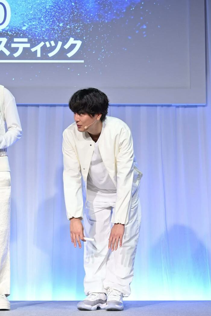 間宮さんは「かっくん(賀来賢人)がうまかった。かっくんをずっと見て『完コピしなきゃ』って思って。僕は不器用なんですけどね、体が硬いし」と言って、その場で前屈を披露。