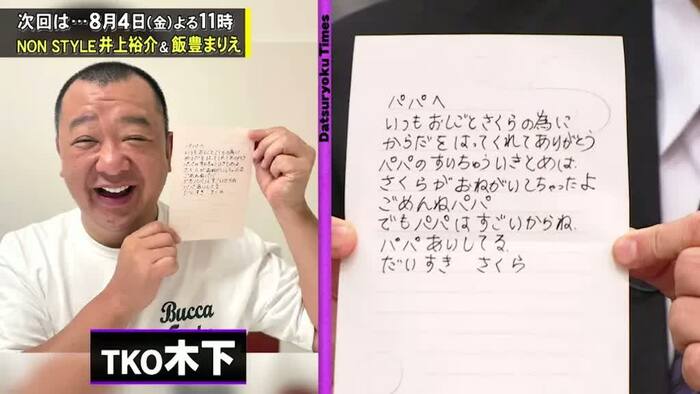 最後は、「コンプライアンス委員会」で、この手紙が木下隆行(TKO)さんが代筆したものであったことがバラされ、尾形さんは「返せよ、涙!」「マジで嫌だわ。関わらせたくないんだよ、娘を!」とガッカリ。