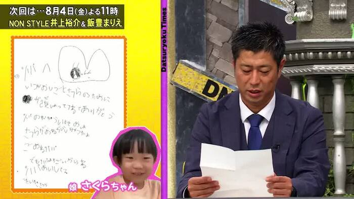 「パパ あいしてる。だいすき さくら」という内容に、尾形さんは「いや、これは…」と言葉を詰まらせ、深々と一礼しました。