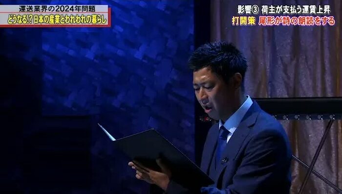 影響③「荷主が支払う運賃上昇」→尾形が詩の朗読をする